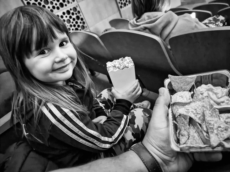 1. Zatímco Anežka vstávala brzo kvůli bruslení, Filip vstával proto, abych se doma nenudil 2. Když holky odešly na bruslení, tak to ale rychle vzdal a dal si ještě šlofíka 3. Já to využil a dal jsem si presíčko bez mlíčka 4. Anežka se po návratu chlubila novou helmou, kterou dostala od tatínka druhé Anežky ze školky 5. Fili vykládal při obědě s babičkou 6. "Anežko já ti ukážu jak mě táta naučil lechtání!" 7. Navečer jsme s Anežkou vyrazili do kina a zatímco ona chtěla standardní sladký popcorn, já si dal po dlouhé době nachos 8. Kupodivu mě Gábin kouzelný domeček ve filmu bavil taky stejně jako děti 9. V kině jsme byli na kolobce a z cesty na brndě se mnou byla Anežka skoro tak nadšená, jak z filmu
