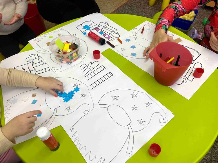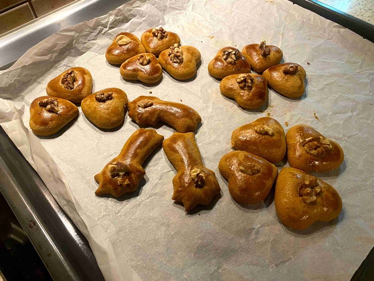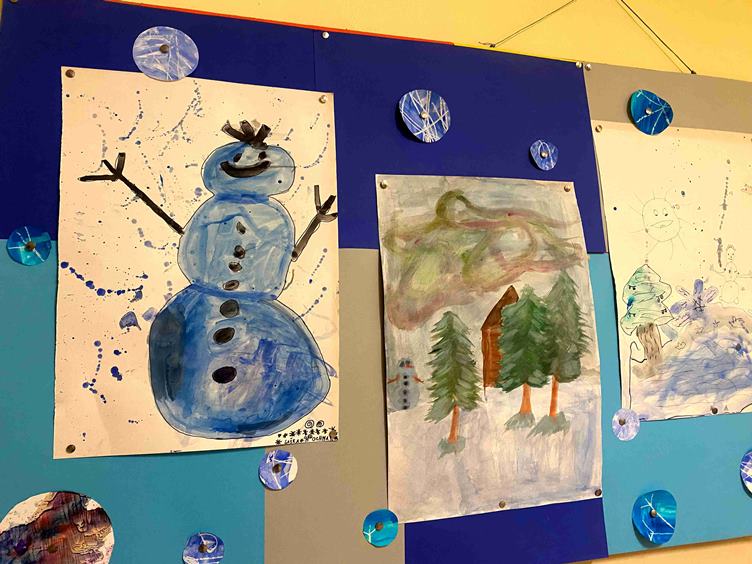 naši najmenší lepia * preberám balík s tulivakmi * a varím si kávu, čaj aj akýsi nápoj * tulivaky sú nenaplnené (odložíme to na potom) * uväznené srdce * snehuliaci mi kývajú na odchod * modrý večer je krásny * na nákup na námestie * prvé pečenie