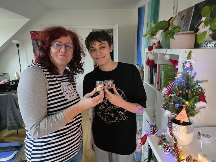 My síce alkohol už dlho nepijeme, ale Danka urobí výnimku a so Saškou si dajú jeden vaječník :) Všimnite si ten obrovský vianočný stromček, ktorý sme včera kúpili :) Dnes je taký lazy day, tak ideme na prechádzku, pozrieť výzdobu v meste. Jupííí