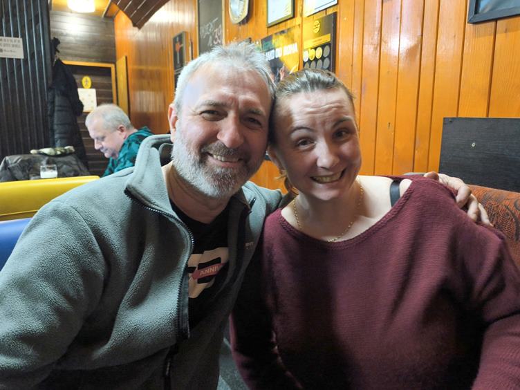 (1) Dnes slavím narozeniny, dostal knihu a triko. Tágo si koupím později (už vím kde). Bude ze mě profík :-) (2) Namontujeme světlo (3) Jedeme vlakem do F-M (4) Z nádraží je to ke Křivému psovi kousek (5) Heli nechutnalo pivo, ale já jsem byl spokojen (6) Tady začíná suchý únor (7) Netušil jsem, že problém sehnat poštovní známku. Hela šla navštívit "svoje" obchůdky a já běžel na poštu. Nebyla zavřená, byla zrušena! Tak asi na pátý pokus se to podařilo. (8) V Zámecké cukrárně si dáme mini zákusek a kávu (9) Po cestě domů se zastavíme v Kačabaru. Paní Marcelce dám poslední PFku a fotky z pálení čarodějnic. Zdržíme se déle, protože poznáme dobré lidi a … z Ostravy!