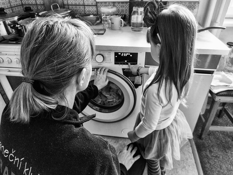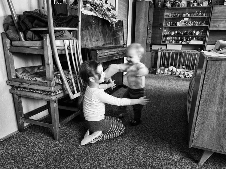 1. Filip se vzbudil hned potom, co holky odjely na nedělní bruslení 2. Fili Anežku vždycky nadšeně vítá, ať se vrací odkudkoliv 3. Dopoledne si ti dva spolu strašně hezky a výjimečně i celkem klidně hráli 4. Tahle pružina je taky evergreen jejich her 5. Do her se zapojila i maminka - Anežka si později donesla i štít a meč 6. Po obědě se Anýz učila zapínat pračku 7. Pája s Domim u nás jen přibrzdili s papáním pro děcka 8. Nová kávička 9. Máma jela zahájit nový kurz Taneční polepšovny do TYMY v Holešově a ti dva si doma pod mým dohledem hráli s panenkama