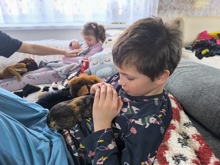 Snídaně, sněhulák, natíráme s Robinem ptačí budku, oběd, jsou s námi i morčata, mladí odjíždí na wellness do Polska, "ohlávka" při venkovní aktivitě, večer je na pořadu Černý Petr a pohádka