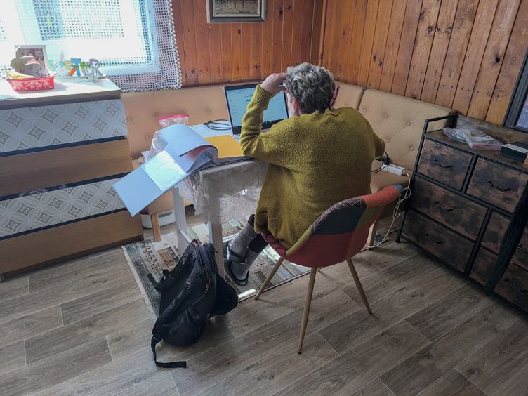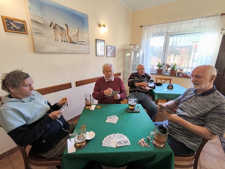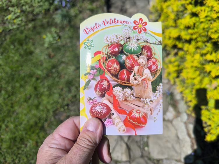 (1-2) Ráno dělám week, pak se s Helou prohodíme (3) Ve schránce je velikonoční pohled od mamky Evy (4) Jedu do Ostravy se objednat na rehabilitace (5) Nakoupím pečivo (6) Bohouš už stříhá metr a těší se do důchodu (7) Už to raší (8-9) Taroky a zpátky na chatu