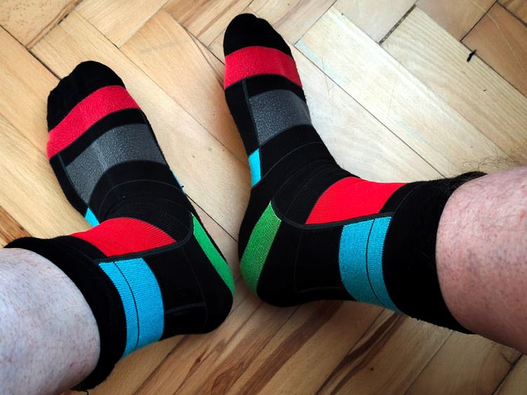 Po čase opět přišly na řadu mondrianovské ponožky... Snídaně v hrnku: rozlamaný chleba, nakrájené vajíčko a trošku mléka... Musím koupit čtyři tyhle baterky... Citróny v Tescu... Jarní zeleň v Novosadech... Zátiší prstenu na mobilu... Dostal jsem úschovnou fotky od Jirky... Po pěti týdnech zítra odvezou plastový odpad...