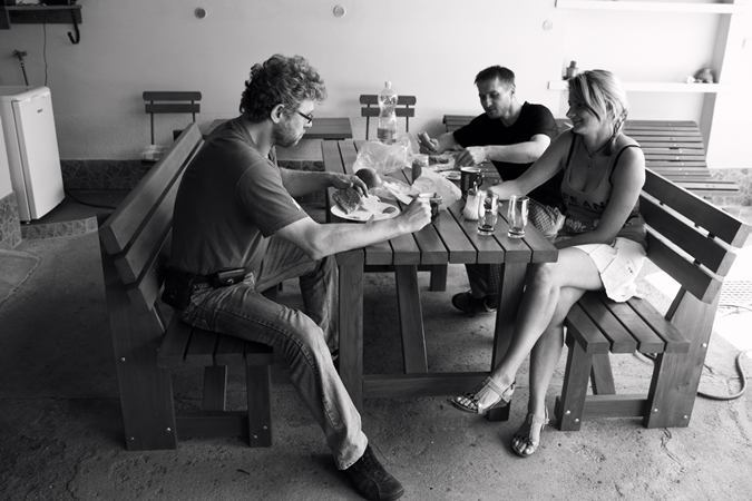 ráno chystá 8 letý synáček snídani i pro svou sestřičku....sestřička stále spinká jak špalek....odvážím je do příměstského tábora kde tráví den...přijíždíme do práce a šéf si dává kávičku a chytá bronz....na dílně už se pracuje jako pilné včeličky...a jakože oběd alla salámek s cibulkou :-)...šňůra zeje prázdnotou, asi není ještě opravená žádná pračka, která by poté zaplnila prádlem šňůru...děti si zakládají z nákupu ukořistěné Šmouly, které dávají v hypermarketu za vydatnou útratu..a manžílek večer odchází pozlobit své tělíčko sportem zvaným TENIS :-)))...