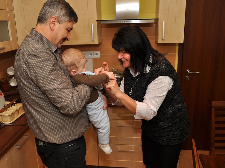 Doobeda sme boli pozrieť na Budatínskom hrade. Na obed prišli naši a tak mal Dominik všetkých starých rodičov pohromade. Dnes už návšteva šla späť na východ. Pred odchodom sme si spravili spoločnú fotku. Naši ešte ostali na hodinku pohrať sa s Dominikom.