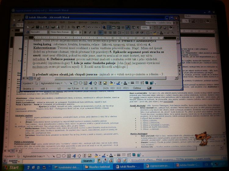 Jedu do Brna na zkoušku, kterou jsem sakra pos...!!! Strašně mě to štve, protože jsem si jist, že to nebylo rozhodně na F! Vařím si doma kafe na uklidnění. Pak mě zase naštve počítač, protože má špatný větrák a túruje ho jak kdyby startovala helikoptéra. Naštěstí se mě naši na zkoušku neptali, nechci aby věděli, že jsem ji nedala a chystám se ji co nejdřív opravit. Večer dělám debilní filosofii. Chci být Brokem. ten nemusí nic dělat. Ale jo, byla by to děsná nuda..